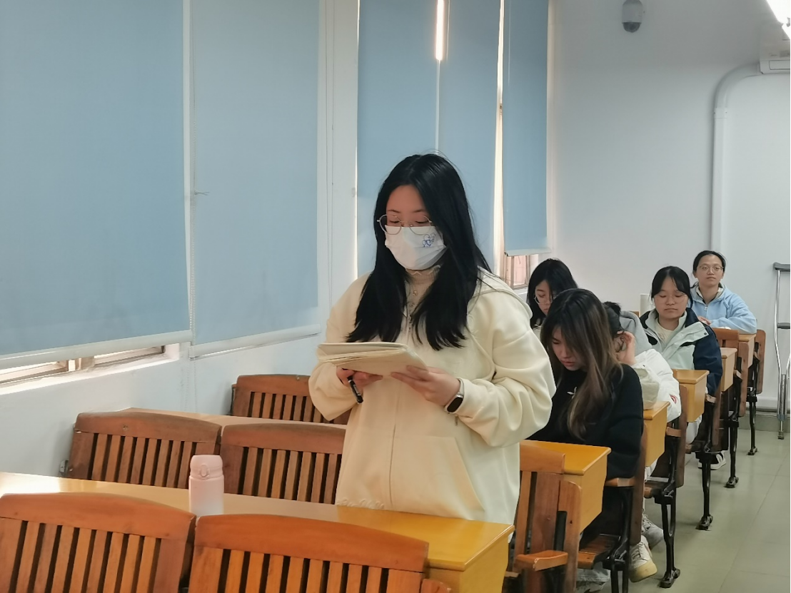 余秀虹作为党员代表发言,她表示无论是习近平总书记在讲话中提到的“顺应信息技术发展潮流”、“建设文化强国”还是视频课程里说到的“科技创新、民生保障”…都是当下社会以及国家必须攻克的难题,因此我们应接好时代的接力棒,勇担使命,不断提升自身素质,在更多领域发挥青年的创造力和活力,为全面建设社会主义现代化国家、全面推进中华民族伟大复兴而团结奋斗。