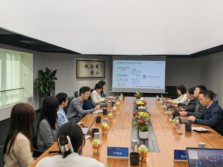 首先,调研组来到广州三新集团总部。陈赞坚详细介绍了三新集团的四大板块业务和人才培养体系,并对校企合作的初步方案进行了介绍,对当下行业发展趋势以及企业自身的人才需求痛点进行了详尽剖析。
