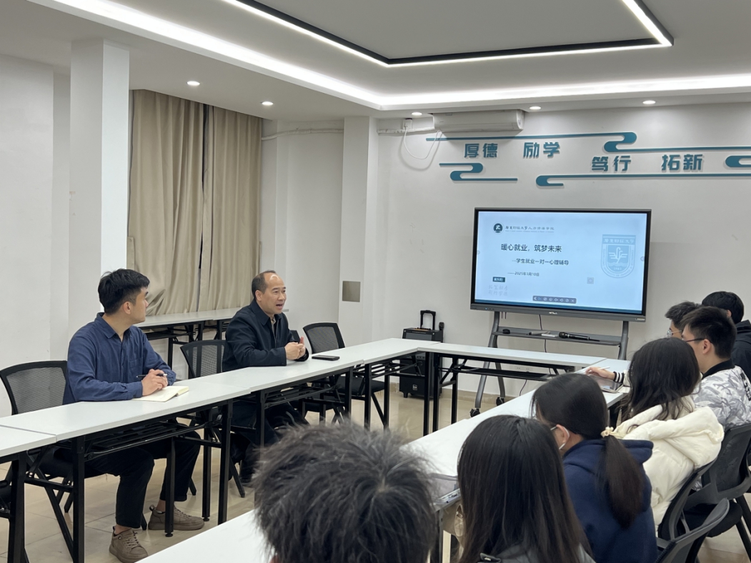 活动采取“一对一”深度交流形式,与会毕业生对自己当前的就业实习情况及存在困难进行了介绍交流,也提出来下一步计划和希望。黄东阳结合每位同学的具体情况,围绕就业压力来源、职业规划方向、现实困惑挑战等方面,逐一进行分析研判,提供针对性建议。他强调,面对就业市场的多元变化,同学们既要保持理性认知,精准匹配个人能力与岗位需求,也要坚定信心,勇于把握机遇,在实践中不断提升核心竞争力。一是要进一步梳理和总结自己的能力经验,写好简历把自己介绍好;二是要保持积极心态勇敢走向市场抢抓机遇,不断尝试不断积累经验;三是要继续加强礼仪礼节等方面的学习,保持积极向上的精神风貌助力就业,四是鼓励毕业生用长远眼光看待职业选择,把个人发展融入社会需求,早谋划早就业。