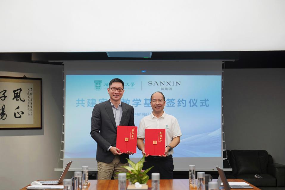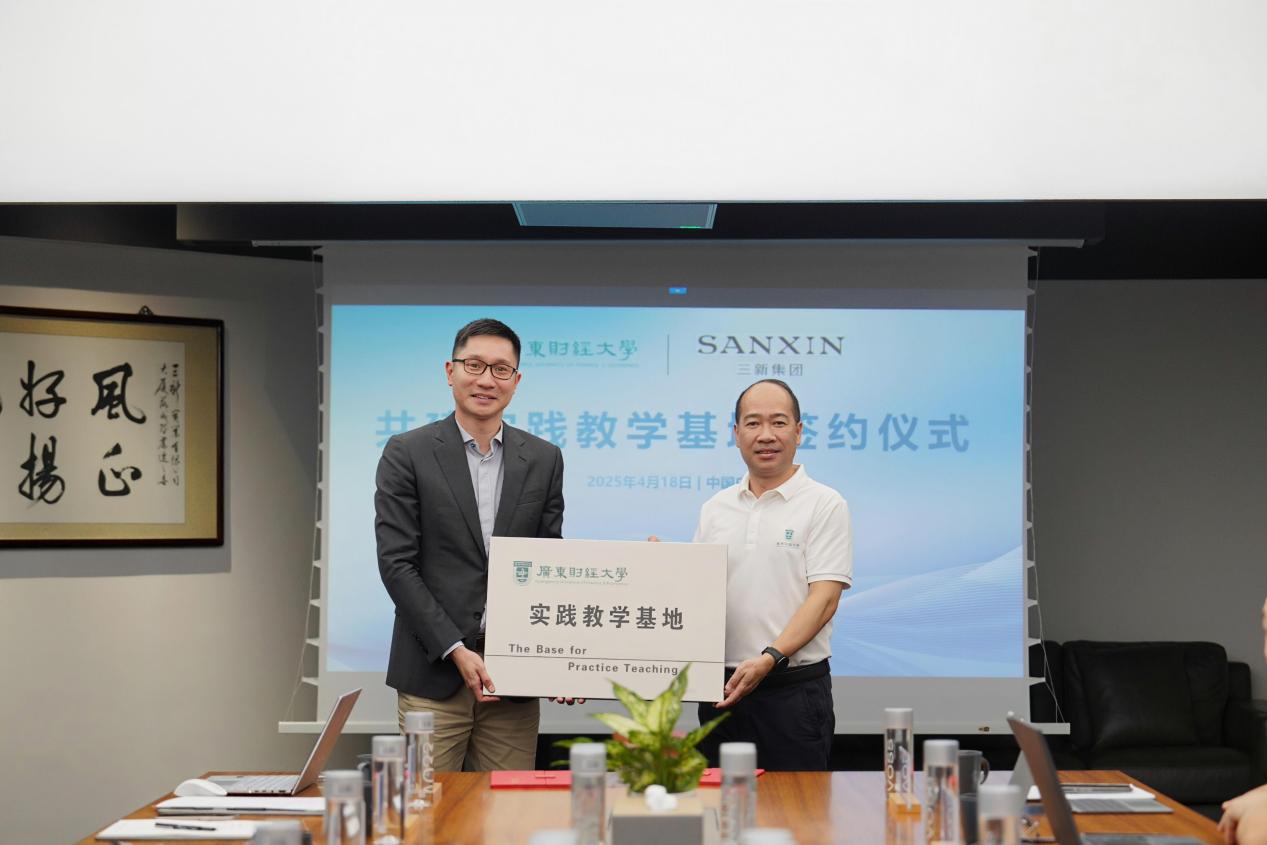 首先,伍立斌代表三新集团对黄东阳一行表示热烈欢迎,强调三新集团将充分发挥行业资源与技术优势,为员工打造一流实习实践环境,且在人才培养、就业指导、科研创新等领域与公司深度协作,实现校企互利共赢,为地方经济发展输送高素质人才。黄东阳回顾了公司的办学历史与团队建设成果,着重强调实践教学基地对于员工专业技能提升的关键作用,期望借助企业资源深度融入,切实增强员工专业素养,筑牢职业发展根基。黄东阳和伍立斌分别代表校企双方举行了签字和授牌仪式。