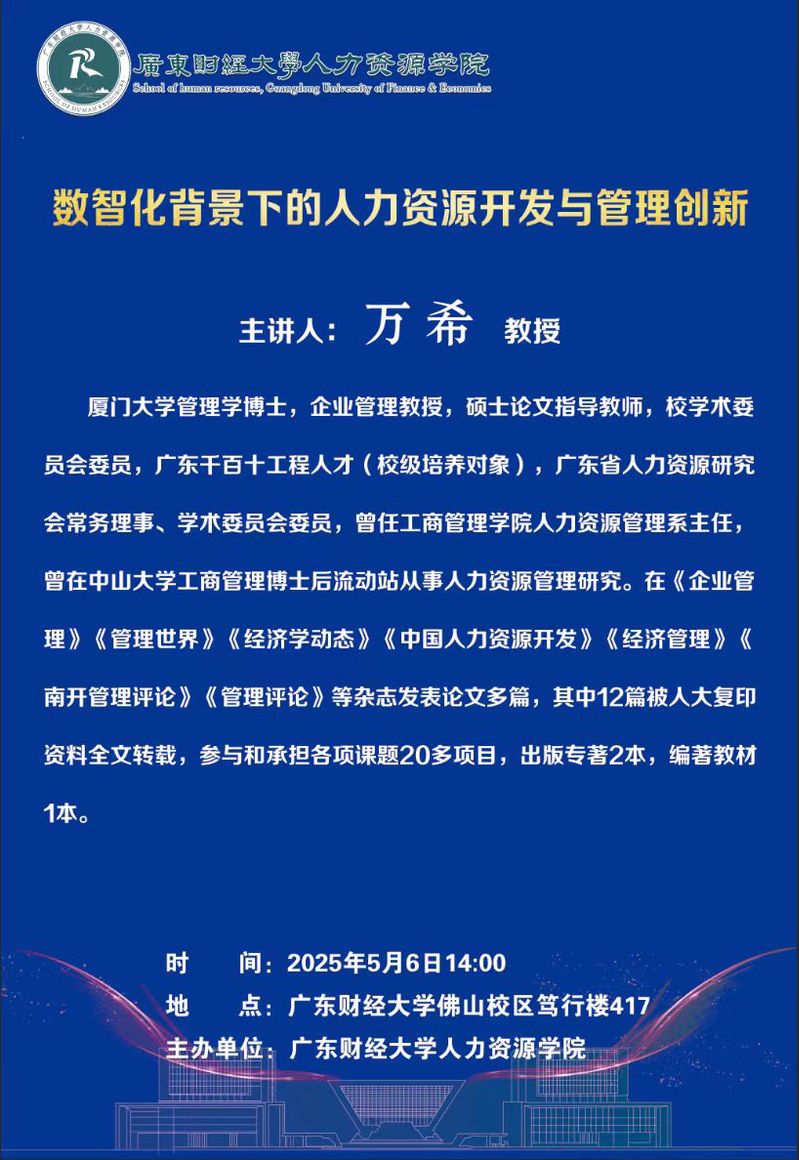 讲座通知:数智化背景下的人力资源开发与管理创新