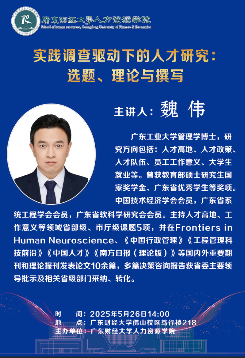 讲座通知:实践调查驱动下的人才研究:选题、理论与撰写