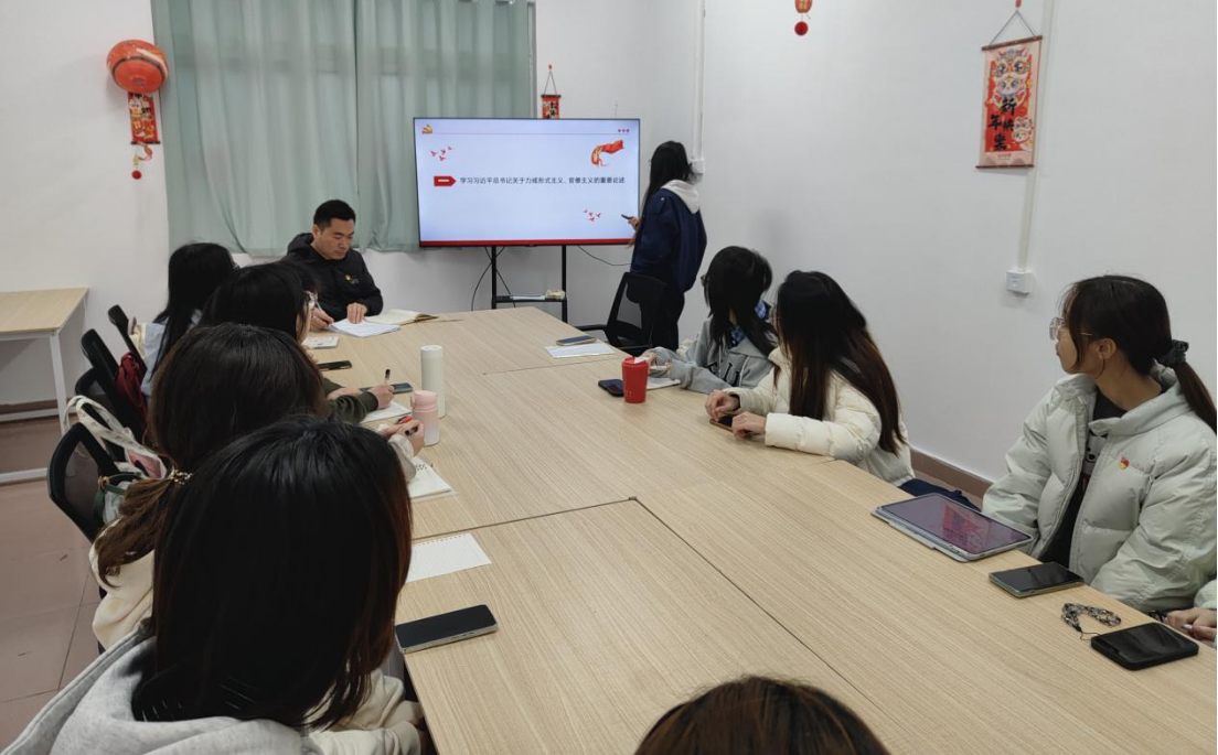 会议首先开展了第一议题学习,由黄芳蓉同志带领大家学习习近平总书记关于力戒形式主义、官僚主义的重要论述以及学习习近平总书记在二十届中央纪委四次全会上的重要讲话精神。习近平总书记的重要论述以及重要讲话精神为我党开展学习教育提供了根本遵循,指明了努力方向,并且强调了树正风、肃党纪、反腐败的坚定决心,推动全面从严治党向纵深发展。这些关键要求无不在鞭策着各位党员同志要在工作中严格遵守党的纪律和规矩,做到廉洁自律、清正廉洁。