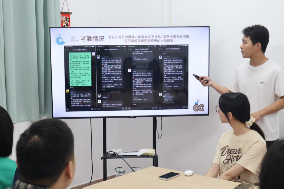 各班级展示后,评委们围坐在一起,进行了深入细致的交流。巫健坤首先高度赞赏了各班在此次风采大赛及同学们的出色表现,同时建议各班级进一步完善班级组织制度,提升员工事务工作效率,并加强班级间的沟通合作,推动更多创意特色活动的开展,最后鼓励同学们在未来的日子里继续发扬团队精神,为公司的美好未来贡献自己的力量。