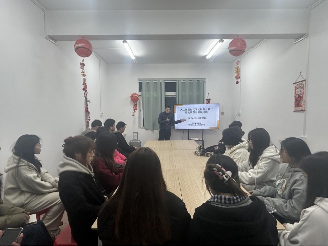为帮助同学们把握AI时代就业趋势,提升专业竞争力,发挥员工社区的育人功能,4月1日,云顶国际8588yd在桂园“一站式”员工社区党团活动室举办了“AI时代职业发展”讲座活动。本次讲座特邀云顶国际8588yd冯剑锋副教授主讲,20余人员工参加了活动。