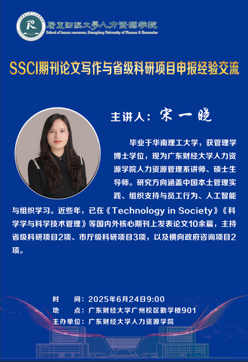 讲座通知:SSCI期刊论文写作与省级科研项目申报经验交流